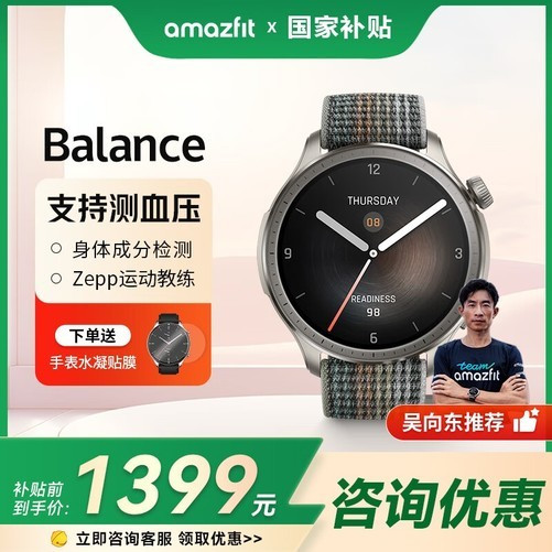 华米跃我智能运动手表,以卓越性能和时尚设计完美融合,助力您的健康生活。这款手表支持多种运动模式,精准记录您的每一次运动数据,同时具备全天候心率监测、睡眠分析等强大功能,让健康管理更加轻松高效。现在京东正在进行限时优惠活动,原价1392元的跃我Balance智能运动手表,参与立减15%活动再享首购礼金40元抵扣,最终到手价仅需1143元,是近期难得的好价,千万不要错过!